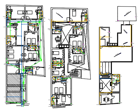 Hotel dwg file , layout strcuture of hotel, rooms, single beds in rooms, furniture, dining, bathroom, etc