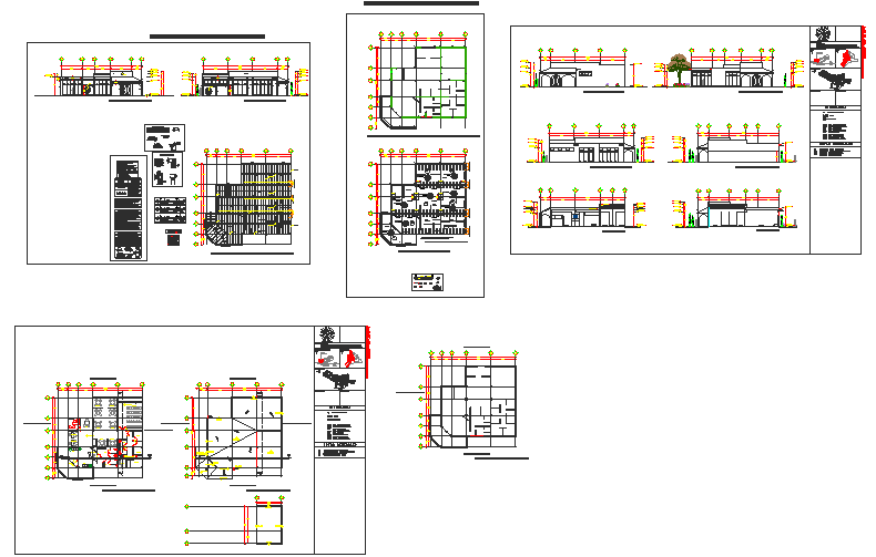 Here the autocad drawing of office buildings showing different floor plans, sections, elevations and other details like furniture layout, structural and constructional details, circulation, etc.