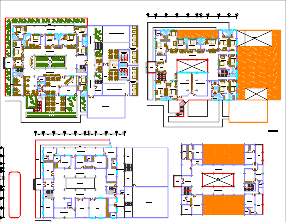 hotel tourist inn dwg file, layout plan, layout plan with furniture, landscaping layout, big rooms, dining etc