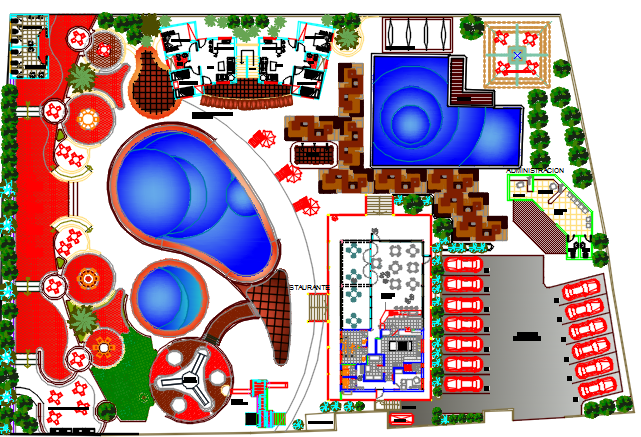 Hotel dwg file , big hotel design, swimming pool, parking are, big rooms, luxurious hotel, grand dining, exqusite layout,