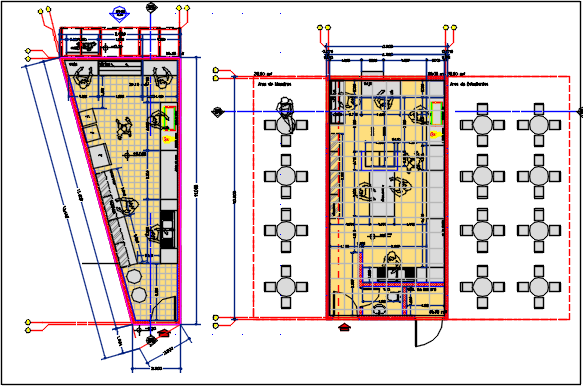 snack bar dwg file, layout plan where there is a separate space for working, play area and group dining, reception