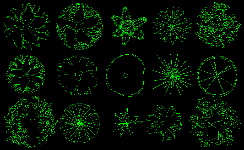 Tree CAD Blocks DWG with 2D Plant Symbols and Top View Design