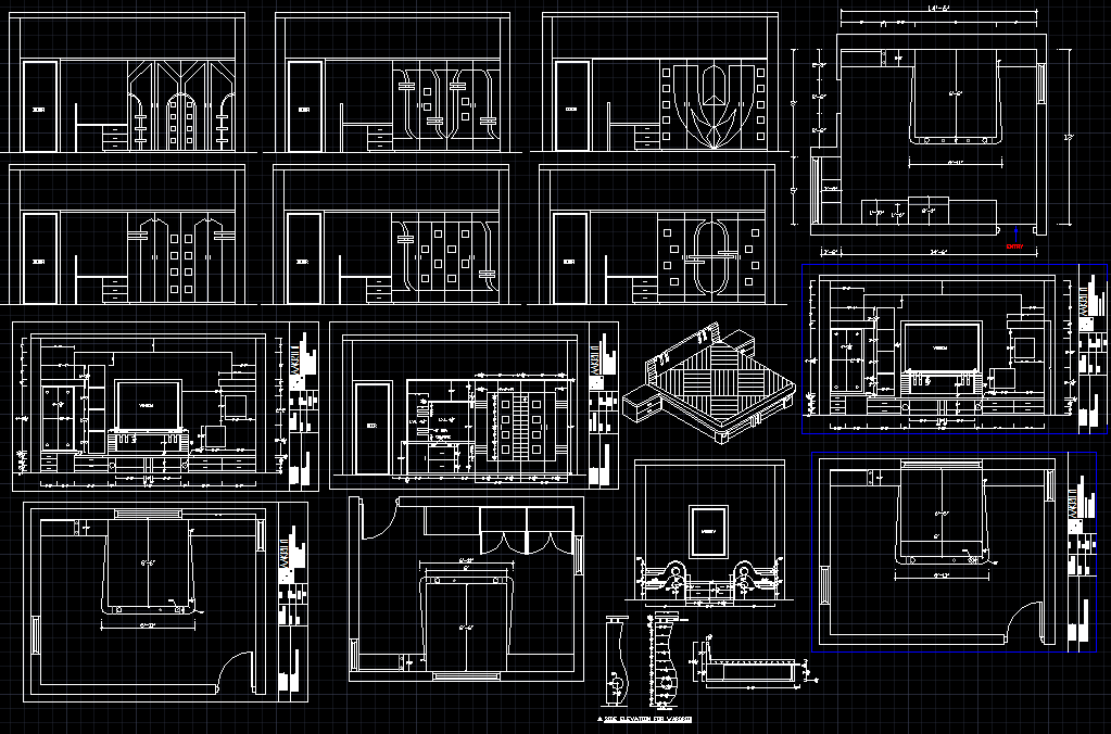Modern House Beautiful Interior design Detailed CAD 2d Drawing is available. Drawing room TV cabinet, Bed elevation design, Bed top elevation design, cupboard design, wardrobe design, dressing table design with measurement, table design, bedroom ceiling design, corner table design, and door design are available. This Interior CAD drawing file is very useful for interior designers and interior design students. Download Now.