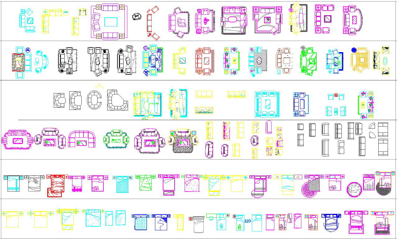 Furniture Blocks dwg file. Find here different furniture like double bed, single bed, sofa set, sofa,