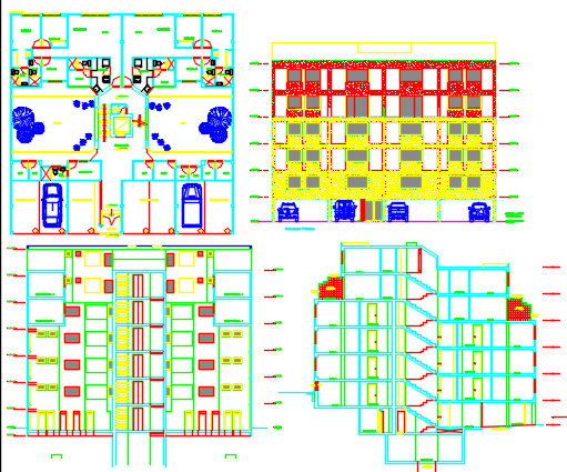 apartment building dwg file, elevation of the building, layout plan of the building, full layout structure