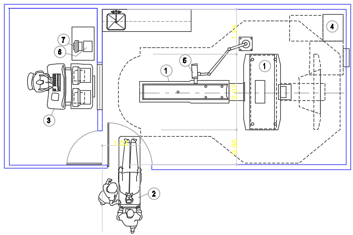 Catscan Room Layout plan Dwg file. Catscan Room layout plan of EQUIPMENT TAN ELEV.CAMILLA PATIENT TRANSPORTATION, ECG LOW COMPLEXITY MONITOR, FOOT LAMP etc.
