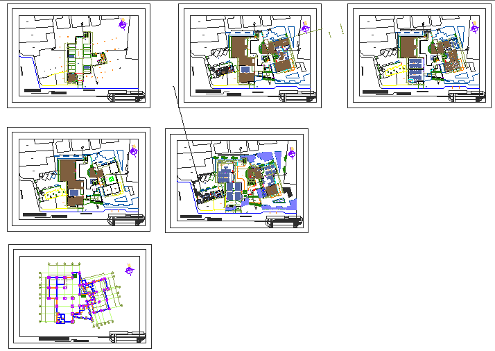 Here the detail drawing of offices for graduate having floor plans, structural plan with furniture details, circulation, landscape around, site development, etc., in autocad drawing.