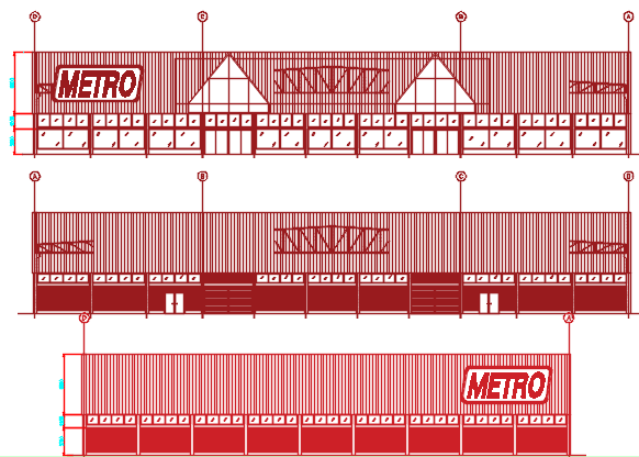 shopping mall dwg file, this project consists of elevtion details of metro complex, side , right and front elevation