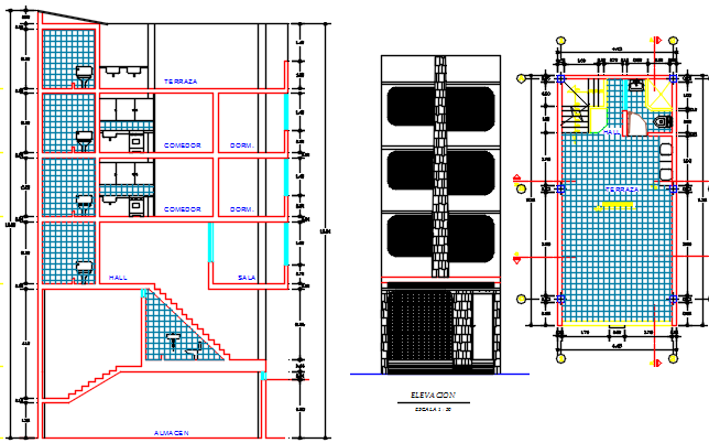 apartment layout plan dwg file, layout structure of house, complete layout structure , car parking, dining, living, rooms , elevation details