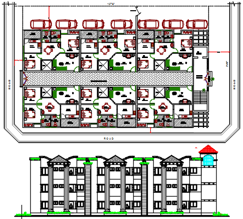 apartment layout plan dwg file, layout plan of 2bhk flat, elevation of the apartment, big apartment design,