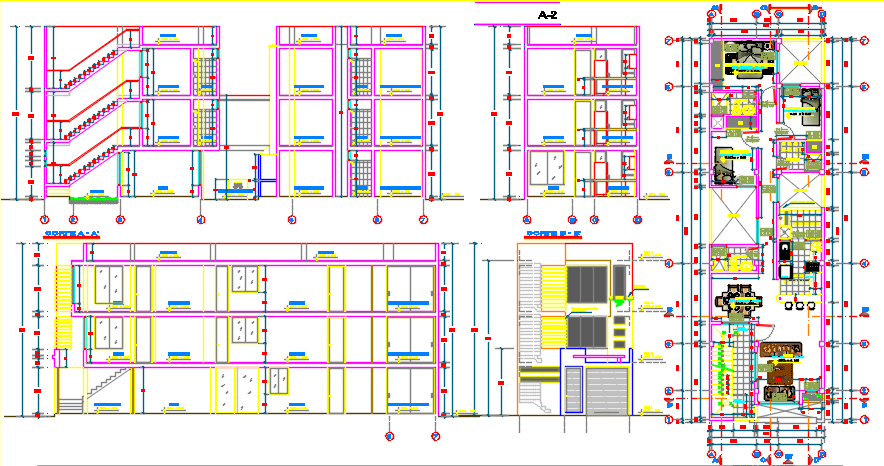 multi family housing dwg file, layout plan of a apartment and elevation details of a aprtment, big design