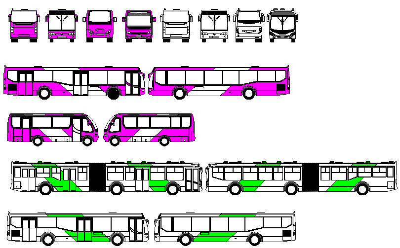 buses minis micros full size darticulated dwg autocad file elevation of buses and thair side or front view with design details