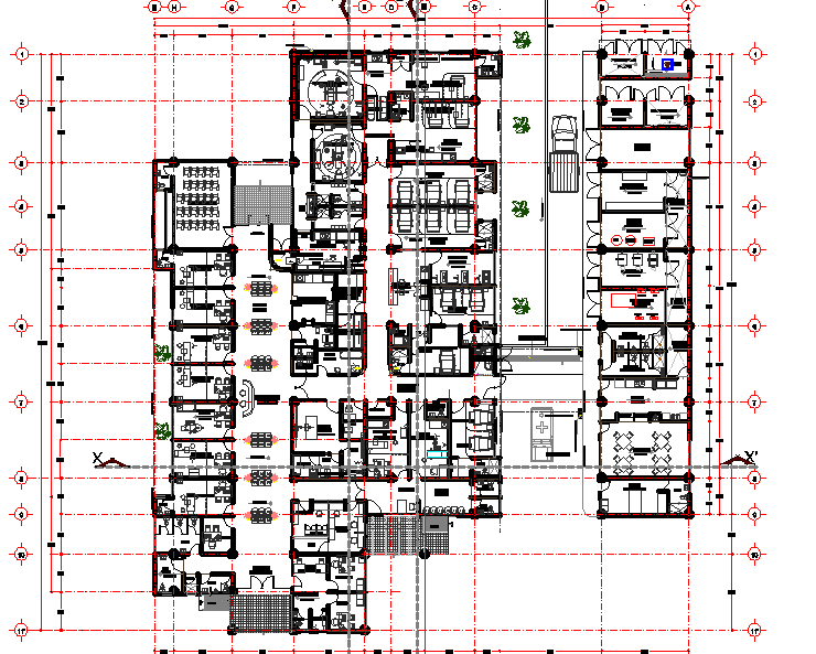 Basic Hospital dwg file. The architecture layout plan along of furniture detailing in autocad format.