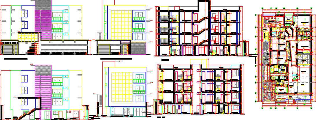 apartment layout plan dwg file, layout plan of a apartment with various floors, elevation design of apartment in auto cad format
