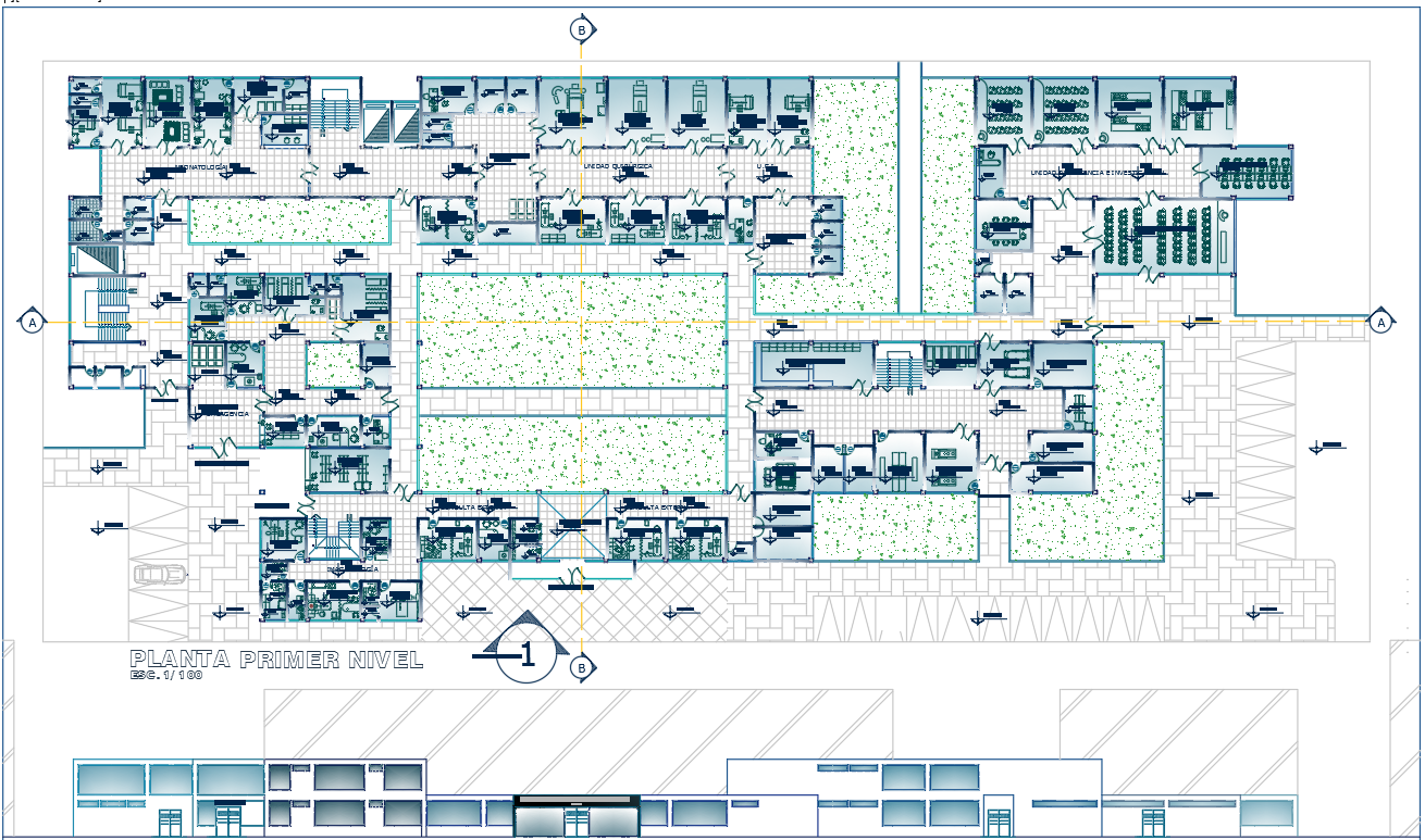 Hospital dwg file. Layout plan along of furniture detail and elevation design of Hospital project in autocad format.