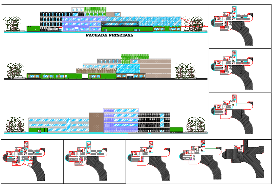 Hospital dwg file. Layout plan of all floor level with furniture detailing, section plan, structure plan and elevation design,