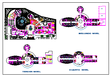 Design of hotel with plan and elevation in autocad file with in-out area parking
