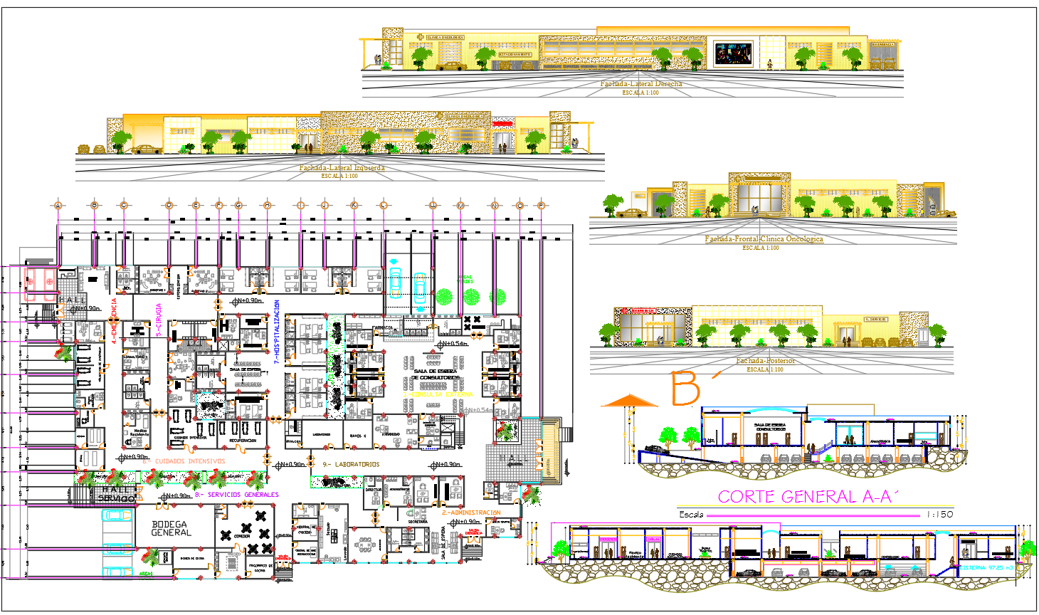 Civil Hospital dwg file. The architecture layout plan, structure plan, construction plan, furniture plan, section plan and elevation design of Civil Hospital project.