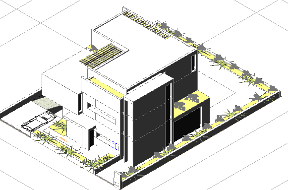 3d house dwg file, design of a big modern house in 3d format, with material and landscaping
