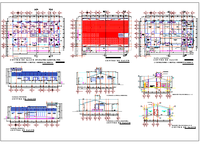 Health Center dwg file. Layout plan with furniture detail, section plan and elevation design of Health Center project..