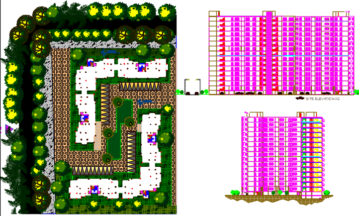 apartment layout plan dwg file, elevation of a big project design, apartment detailing and terrace garden layout plan