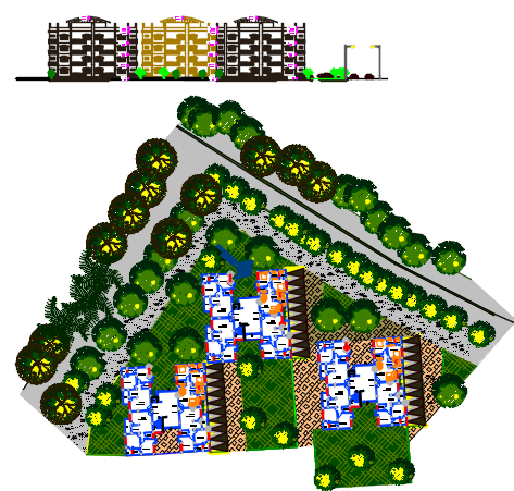 apartment layout plan dwg file, elevation of a big project design, apartment detailing and terrace garden layout plan