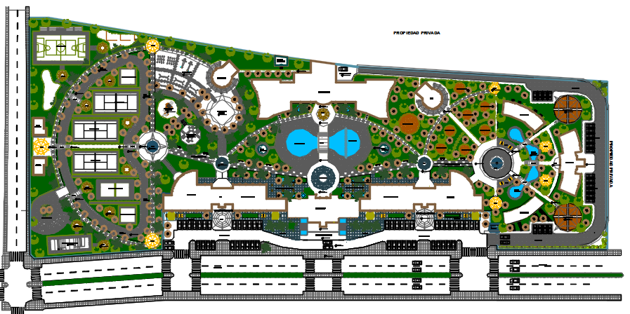 complex design dwg file, layout plan of a big complex design and landscaping design , furniture etc