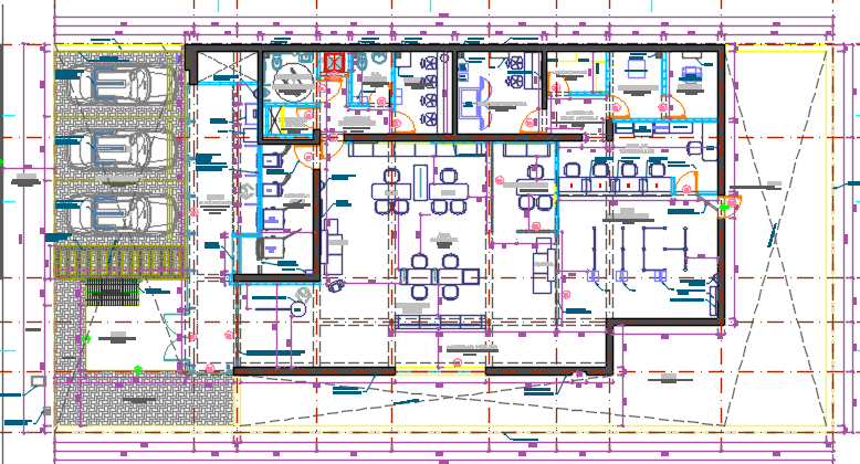office dwg file, layout plan of a office, car parking , furniture models , structure detail etc