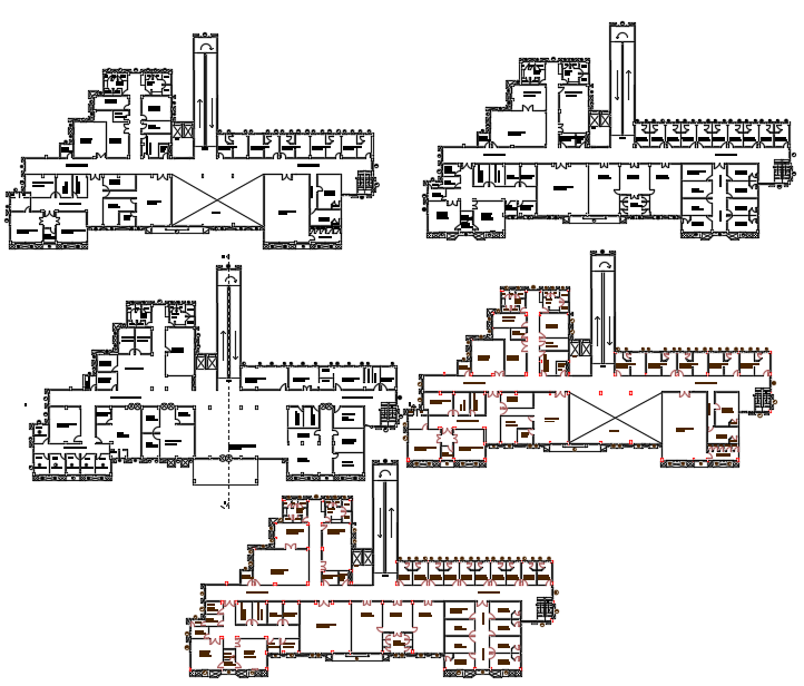 Basic Hospital dwg file. Find here layout plan with furniture detailing, section plan, and elevation design of Basic Hospital project.