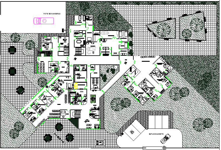 Health Center dwg file. Find here layout plan of Health Center project with landscaping design in autocad format.