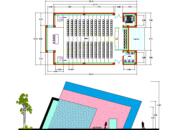 Multipurpose Auditorium AutoCAD DWG Drawing with Plan and Elevation