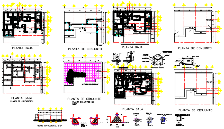 Clinic Project dwg file. Layout plan along of furniture detailing, foundation plan, structure..