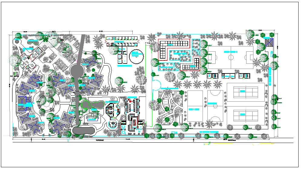 Design of hotel with plan view with in-out way,garden with different tree like mango,