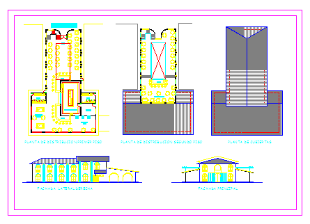Hotel design with plan and elevation with in-out way,restaurant,hall,Barr,dining area