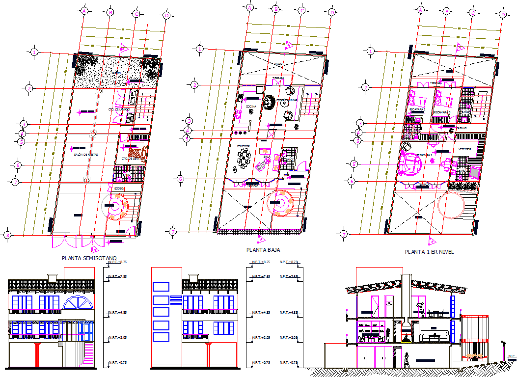 Family House AutoCAD DWG Design with Plans, Section and Elevation