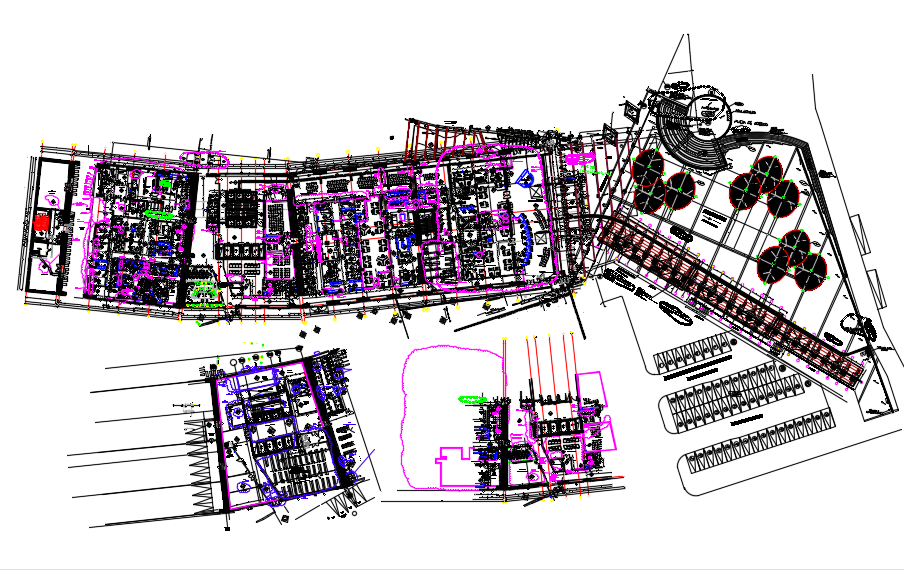 Hospital dwg file. Find here layout plan along of furniture detailing also has landscaping design in autocad file..