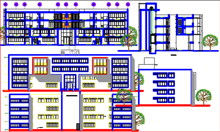 multi family housing dwg file, elevation of a big apartment design, with layout plan and all details and furniture detailing