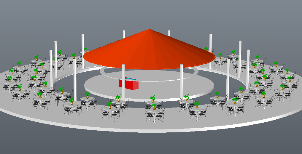3d Restaurant dwg file. Find here dining area arrangement and center kitchen of 3d Restaurant model in autocad format..