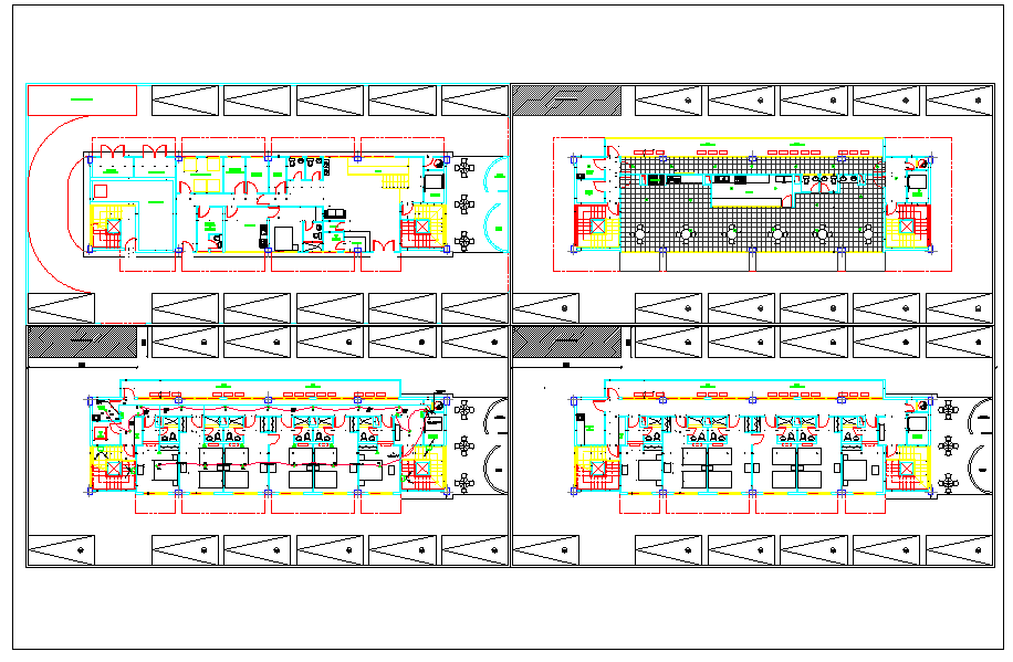 Hotel Design dwg file with in-out way reception,admin office,washing area,admin office,electric room,rooms,kitchen,dining area,walking way,deposit counter in hotel design.