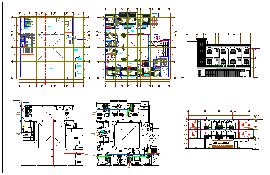 Hotel Design and lay-out detail dwg file with plan and elevation, in-out way,deposit counter,kitchen,bedroom,washing area,door and window view,room in hotel design and layout detail.