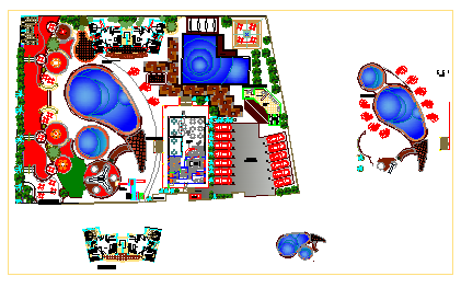 Design creation of hotel dwg file with kitchen,washing area,bed rooms,garden view,restaurant,table area,parking way,admin office,child playing area,walking way,