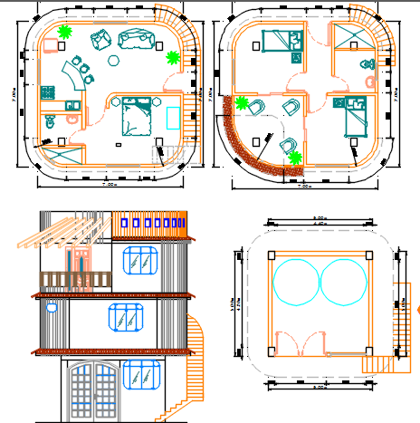 bungalow dwg file, layout plan and elevation of a big bungalow , furniture detailing in auto cad format