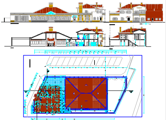restaurant dwg file, various elevations of hotels ,landscaping, trees, big hall, rooms, exotic design hotel design in autocad format