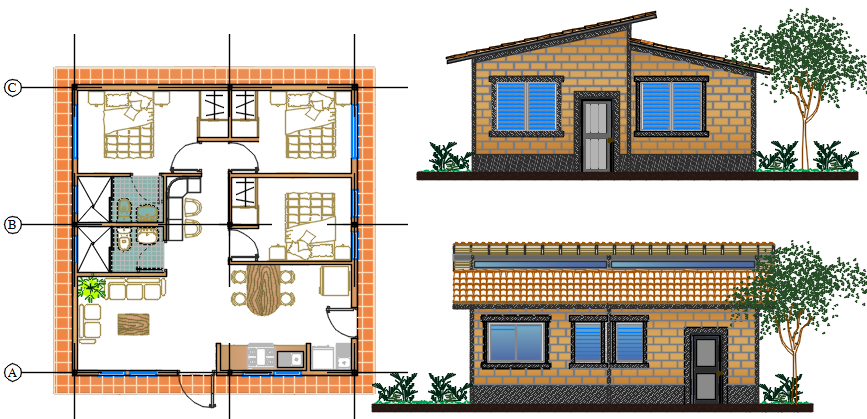 pent house dwg file, layout plan of a 3bhk house and furniture detail and its elevation in autocad format