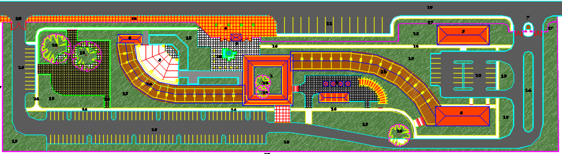 ecological center dwg file, complete layout structure of a ecological center , greenary, landscaping, furniture etc