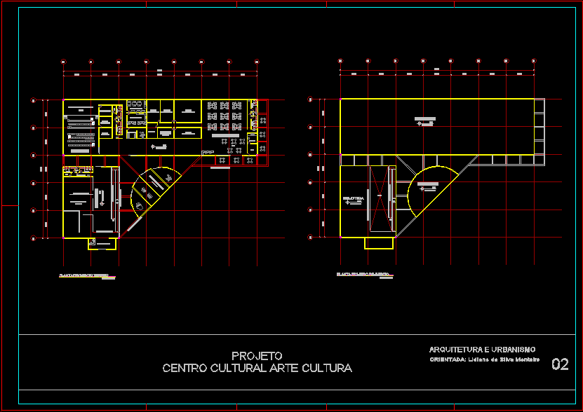 Centro Cultural AutoCAD DWG File with Rendered Floor Plan Layout