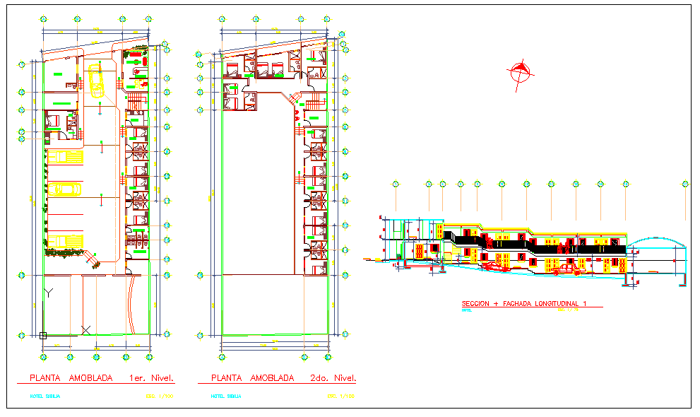 Hotel Design and lay-out detail with entry way,parking way,reception,bedroom,wash