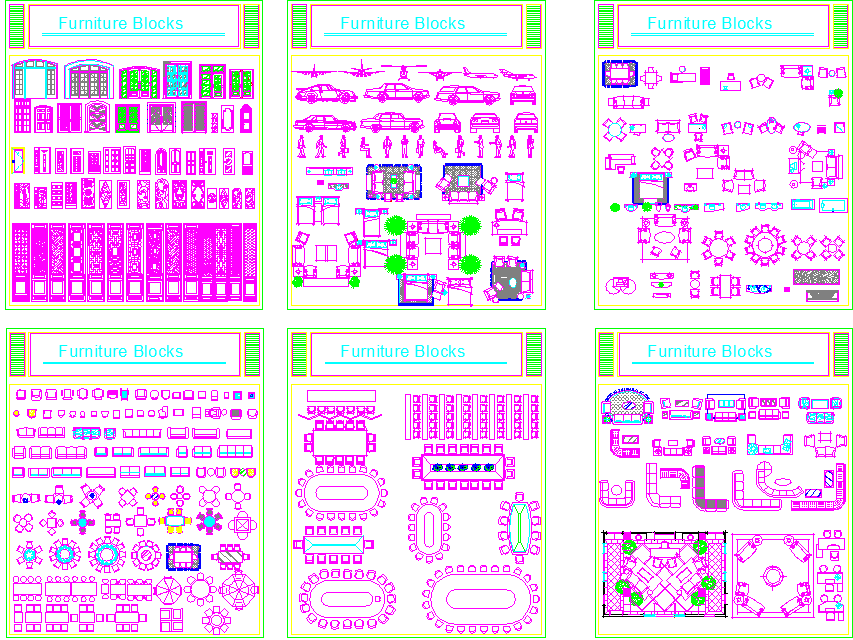 This AutoCAD Furniture CAD Blocks DWG file features a complete 2D collection of detailed furniture layouts designed for architectural and interior design projects. The file includes a wide range of furniture elements such as chairs, tables, sofas, cabinets, beds, and modular setups. Each block is carefully drawn and dimensioned to maintain professional accuracy, making it ideal for use in residential, commercial, or office layout planning. The collection also includes rendered 2D top views that display precise arrangements for living rooms, dining areas, offices, and outdoor setups.