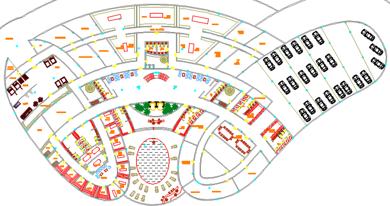 Hotel dwg file , layout plan of a big hotel, elevation design of hotel, posh hotel design, big banquet hall, ac hall, landscaping, vast project etc