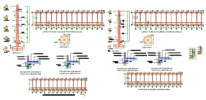 Foundation Layout Of School Building Dwg file. Find here layout plan with furniture detailing, section plan, and elevation design of Foundation Layout Of School Building